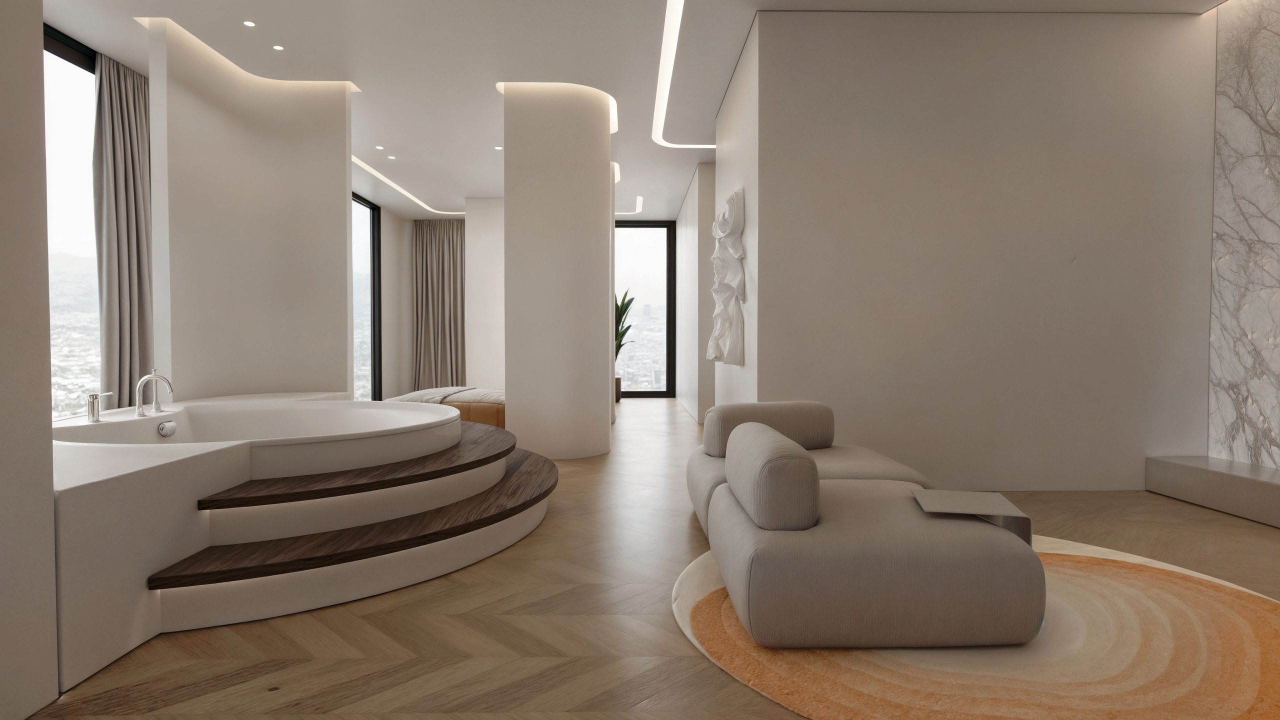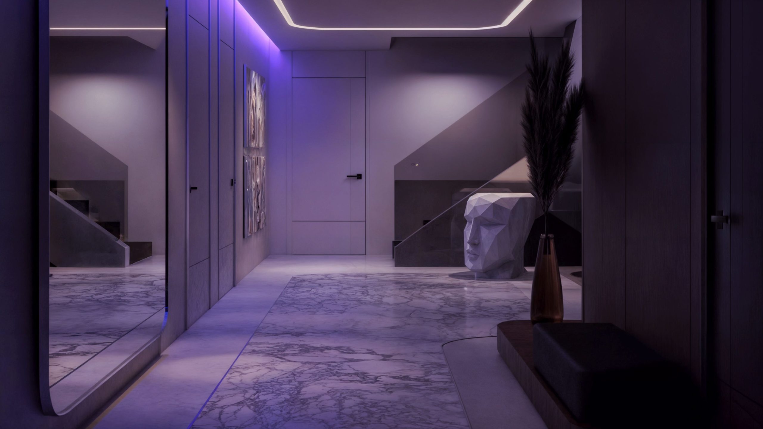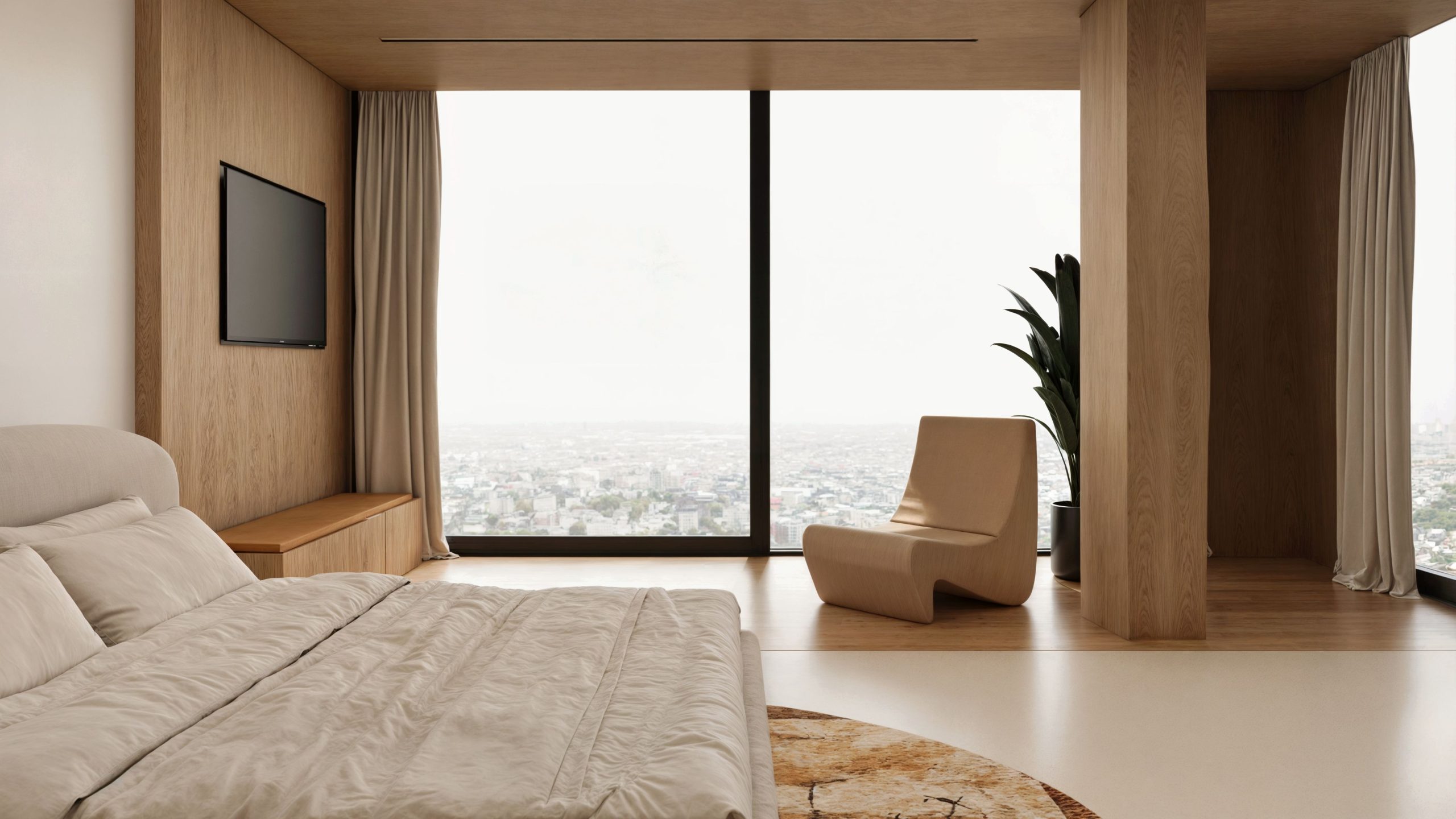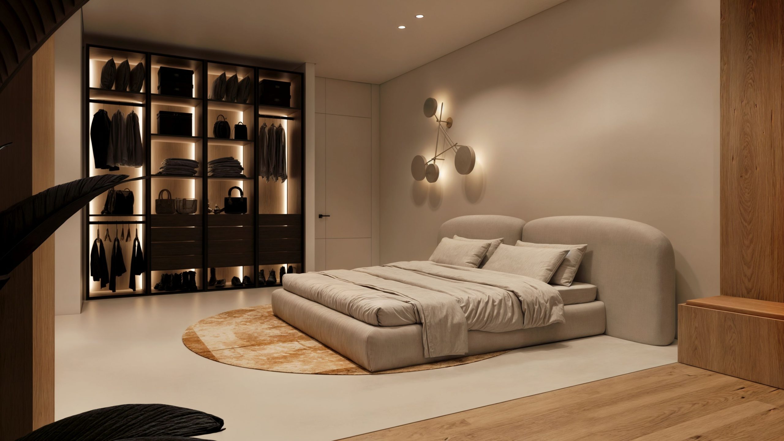 The bedrooms are very important for penthouses. Minimal but luxurious details were added to create a contemporary and cozy atmosphere without disrupting our design line. The harmony that the light’s effect on the environment provides to every unique moment is impressive.