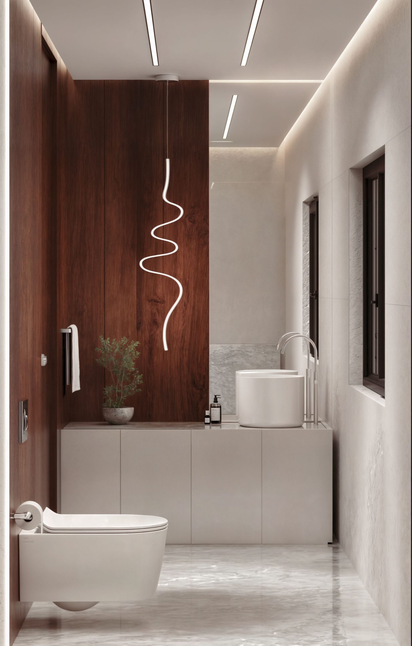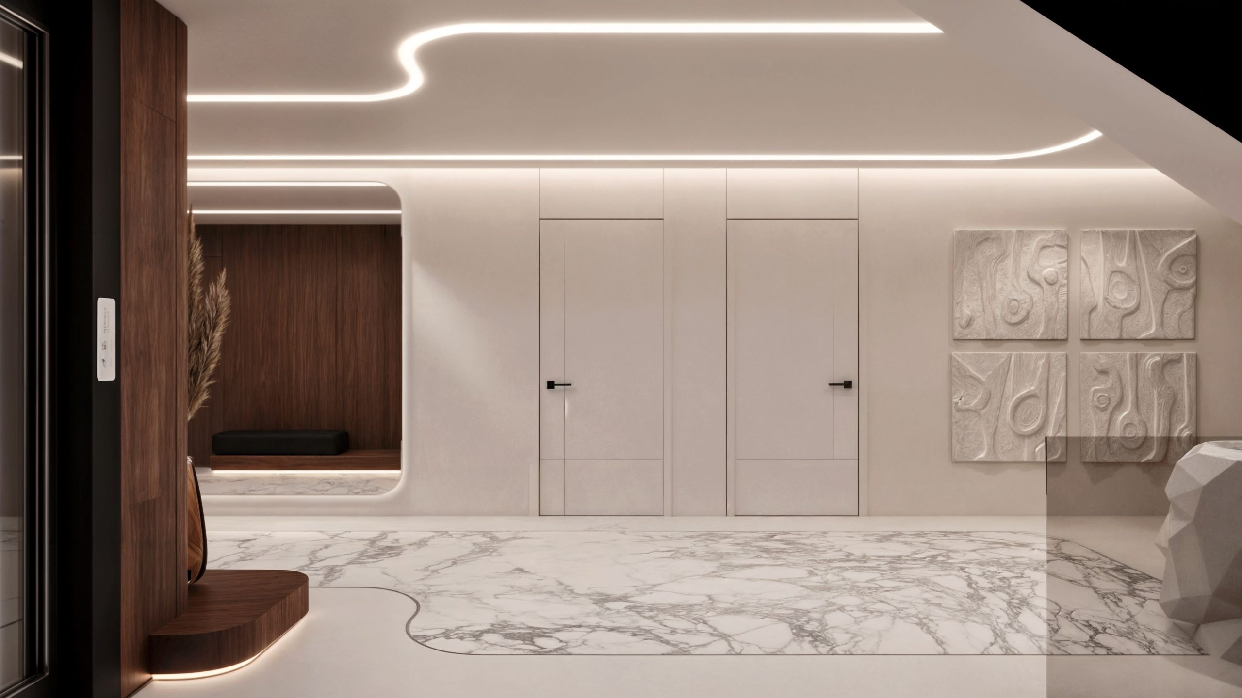 We created the desired space without giving up our minimal line. We provided luxury and modernity at the same time with wood and marble contrast details in the design, where we provided curvilinear forms and soft transitions. We created the desired space without giving up our minimal line.