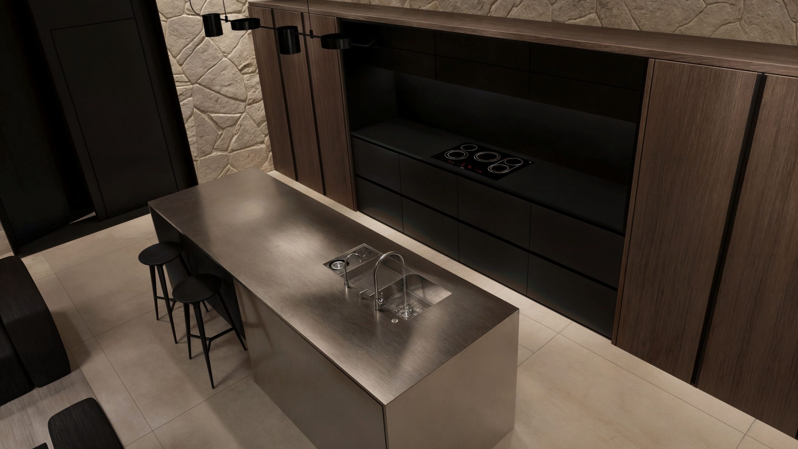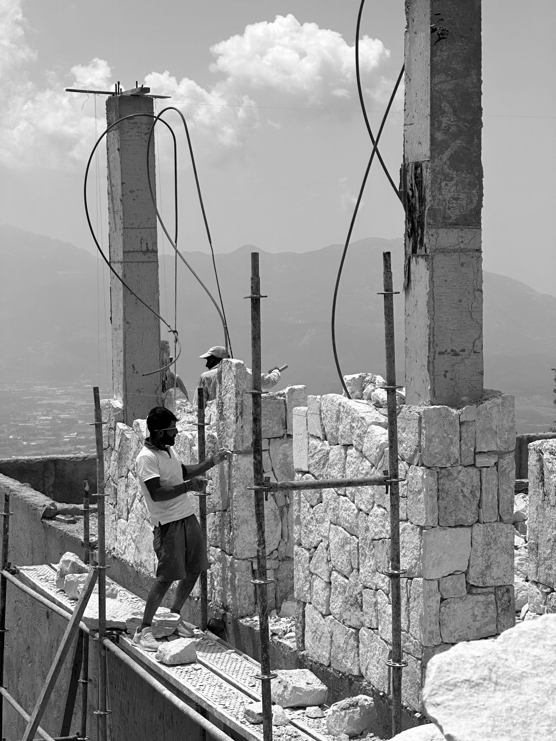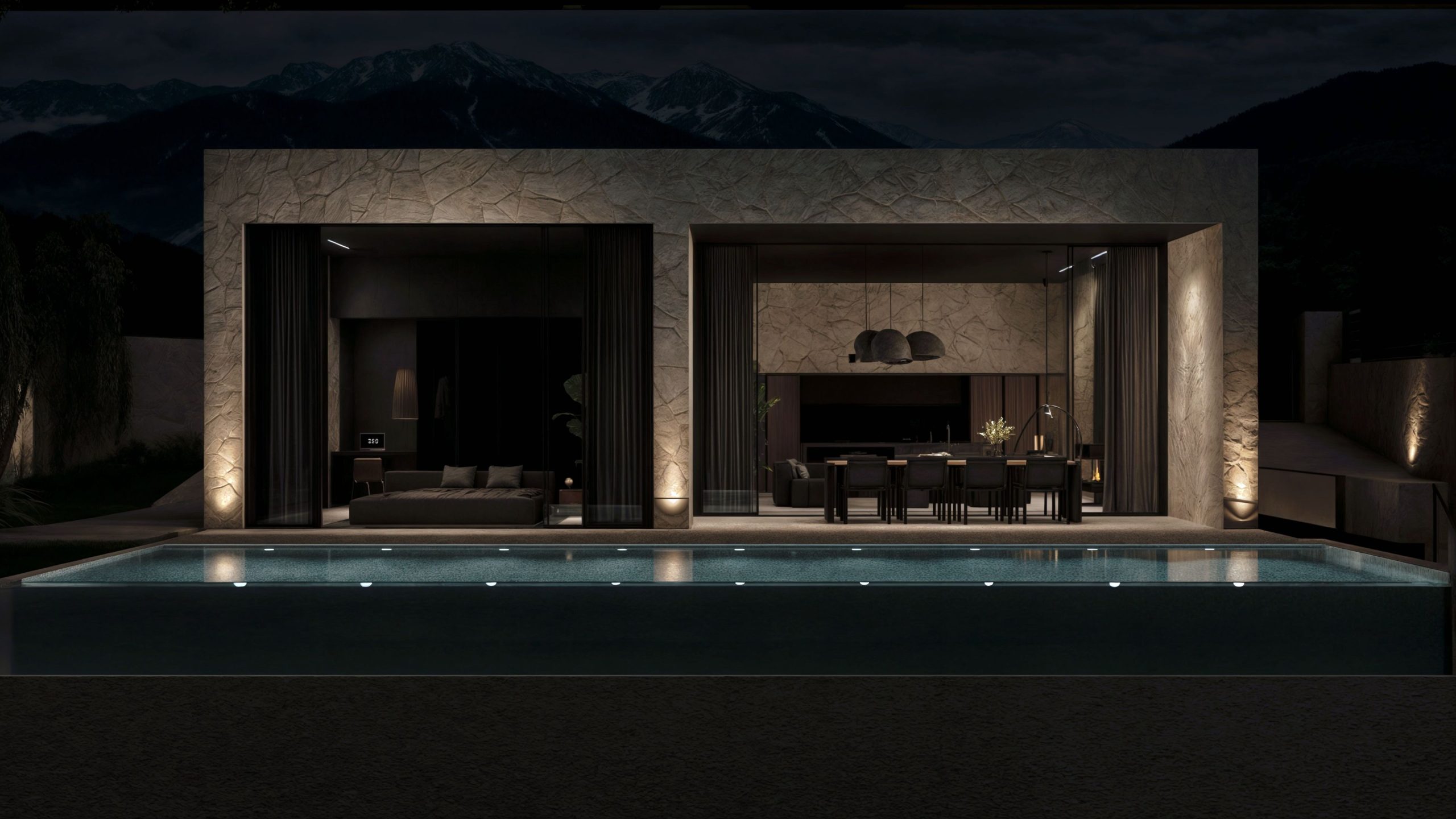 The solid stone structure enhances the natural coolness of the highlands, while modern architectural lines bring serenity and balance to the space. Combining natural stone, wood, and glass, the villa stands as a timeless Aegean home, where traditional materials meets modernity in its purest form.