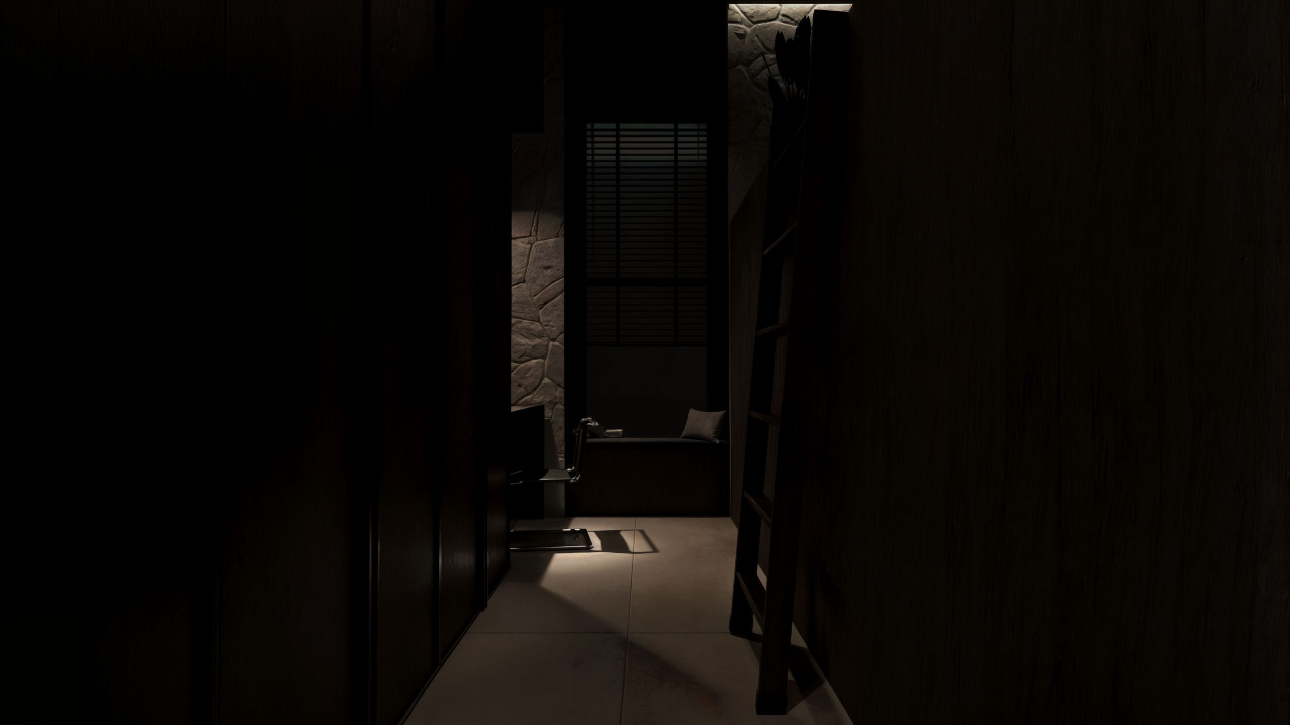 The mezzanine was designed as a youth bedroom, adding a sense of vertical spaciousness to the interior. The lower ceiling height in the sleeping area created a calm and serene atmosphere, harmonizing naturally with the overall space.